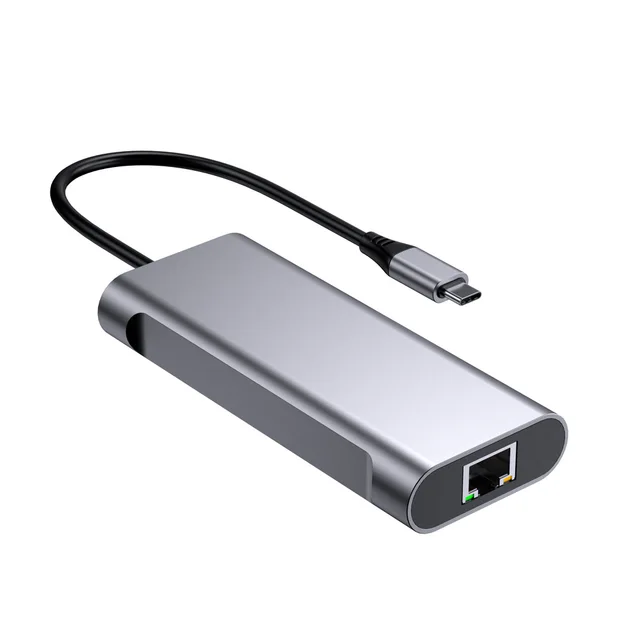10 in 1 Multifunctional USB-C Hub with 1000m Ethernet RJ45 VGA Audio Dock Station for Electronic Devices